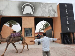 Los Cabellos dorados de Kathleen Turner ondean libres con el viento del desierto mientras intenta convencer a un incrédulo Michael Douglas, cubierto por un pañuelo bereber, de cuál es el camino. Los picos blanquecinos del Alto9 Atlas resplandecen en el horizonde. Sensacional telón de fondo para «la Joya del Nilo», todo un clásico de la 20th Century Fox. Fundido a negro. Las puertas de un templo faraónico se abren ante la inminente llegada de la reina de ébano, Cleopatra. podría ser Egipto, pero es Marruecos. Los escenarios que han dado vida a decenas de largometrajes