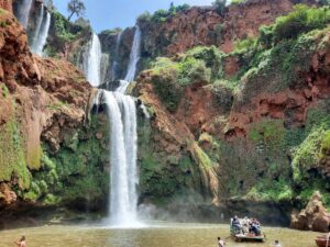 Las Cascadas de Ousoud, ubicadas en la parte central de Marruecos, consideradas las más altas y bellas del país, localizadas en el pequeño pueblo de Tanaghmeilt, en el Atlas Medio, en la provincia de Azilal a unos 150 km de Marrakech, nacen del uadi Tissakht y tienen una altura aproximada de unos 110 metros.. Ouzoud en Berebere significa oliva, que hace referencia a los cercanos olivos que sombrean el camino por el que se accede a la parte inferior de las cascadas. En la cima de las cascadas hay una docena de antiguos molinos pequeños que todavía están en uso